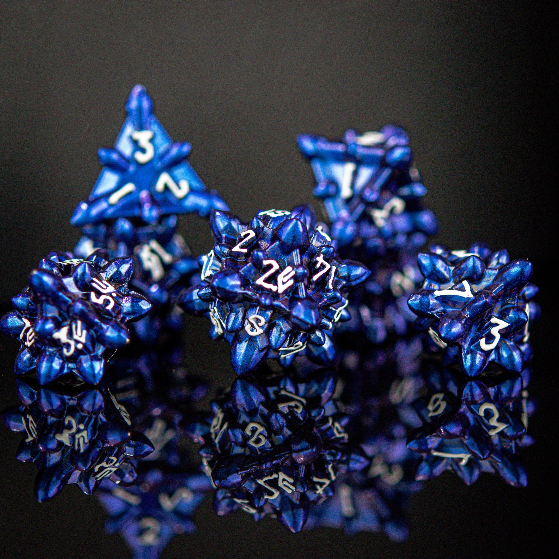 Our metal dice sets are all cast from zinc alloy metal to assure better balanced rolls. This set is perfect for any RPG and will be sure to impress at your upcoming session! Every set comes with its own metal dice tin for easy storage and a winning presentation.