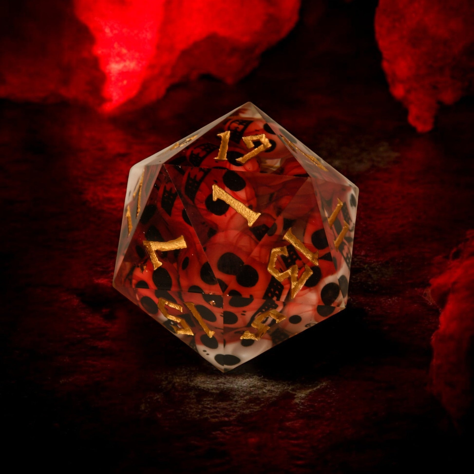 Hand-crafted from beginning to end, our sharp-edged resin dice feature gorgeously hand-painted numbers. These dice are ideal for any tabletop RPG game and are sure to impress at your upcoming session!