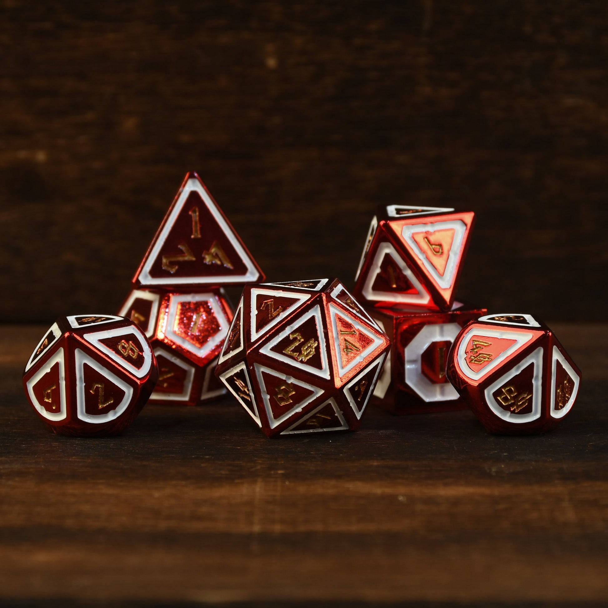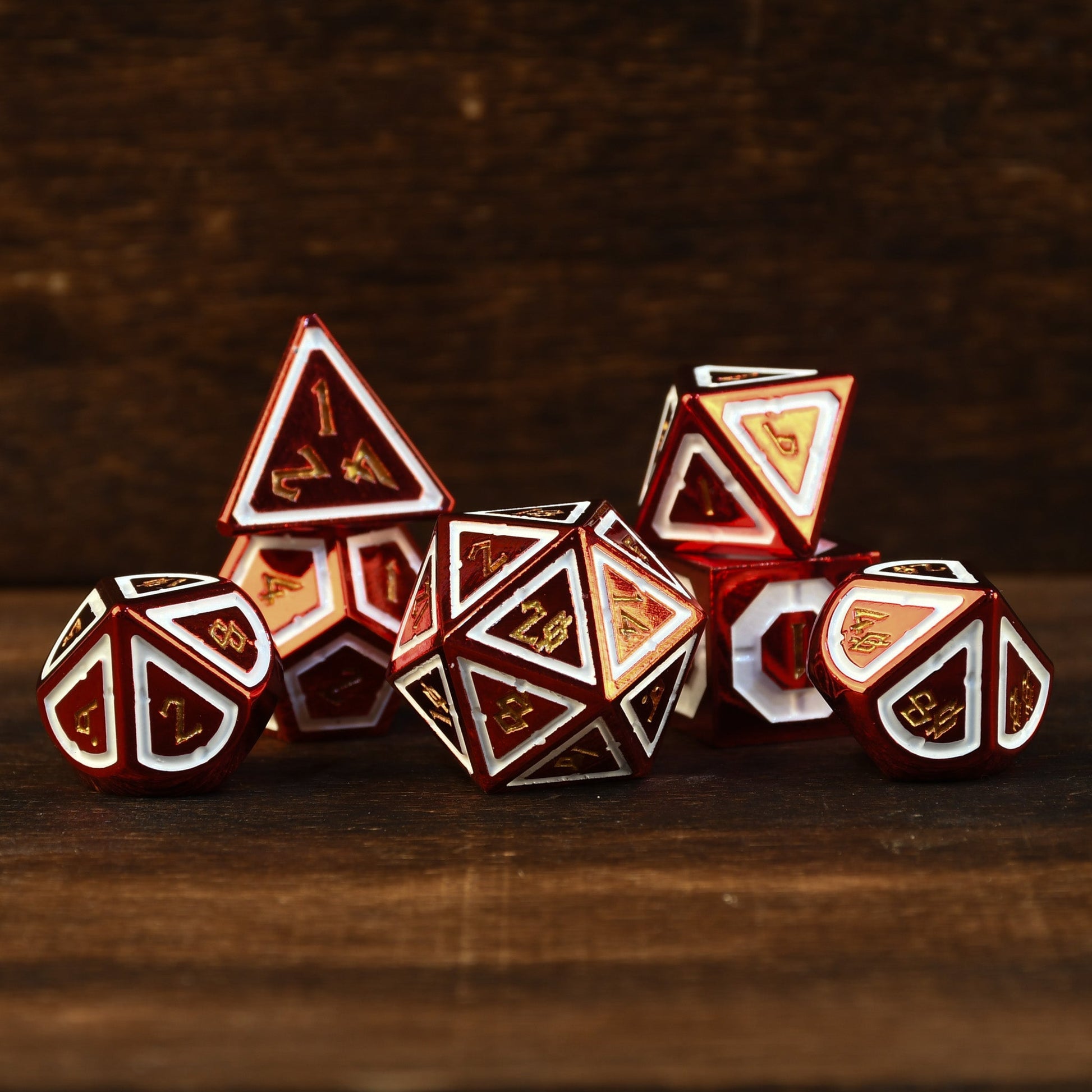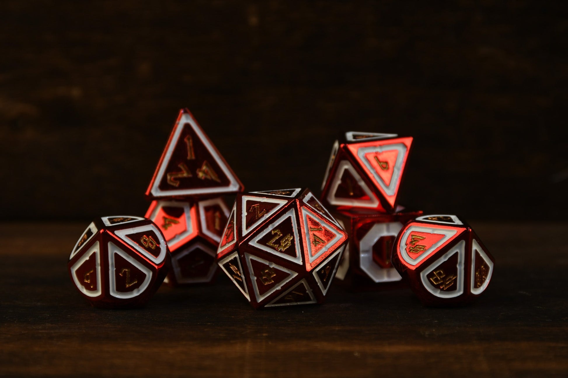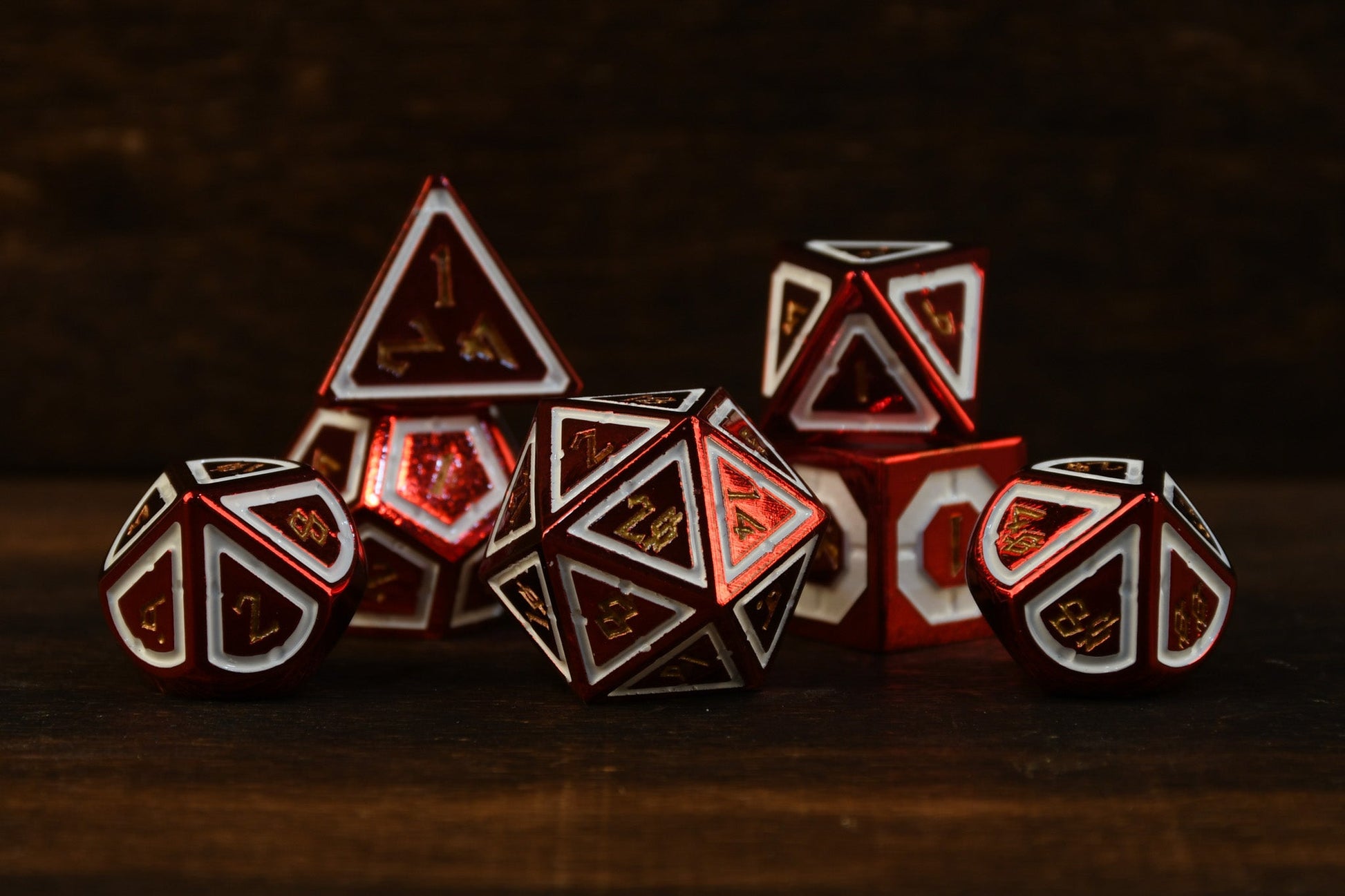 Our metal dice sets are all cast from zinc alloy metal to assure better balanced rolls. This set is perfect for any RPG and will be sure to impress at your upcoming session! Every set comes with its own metal dice tin for easy storage and a winning presentation.