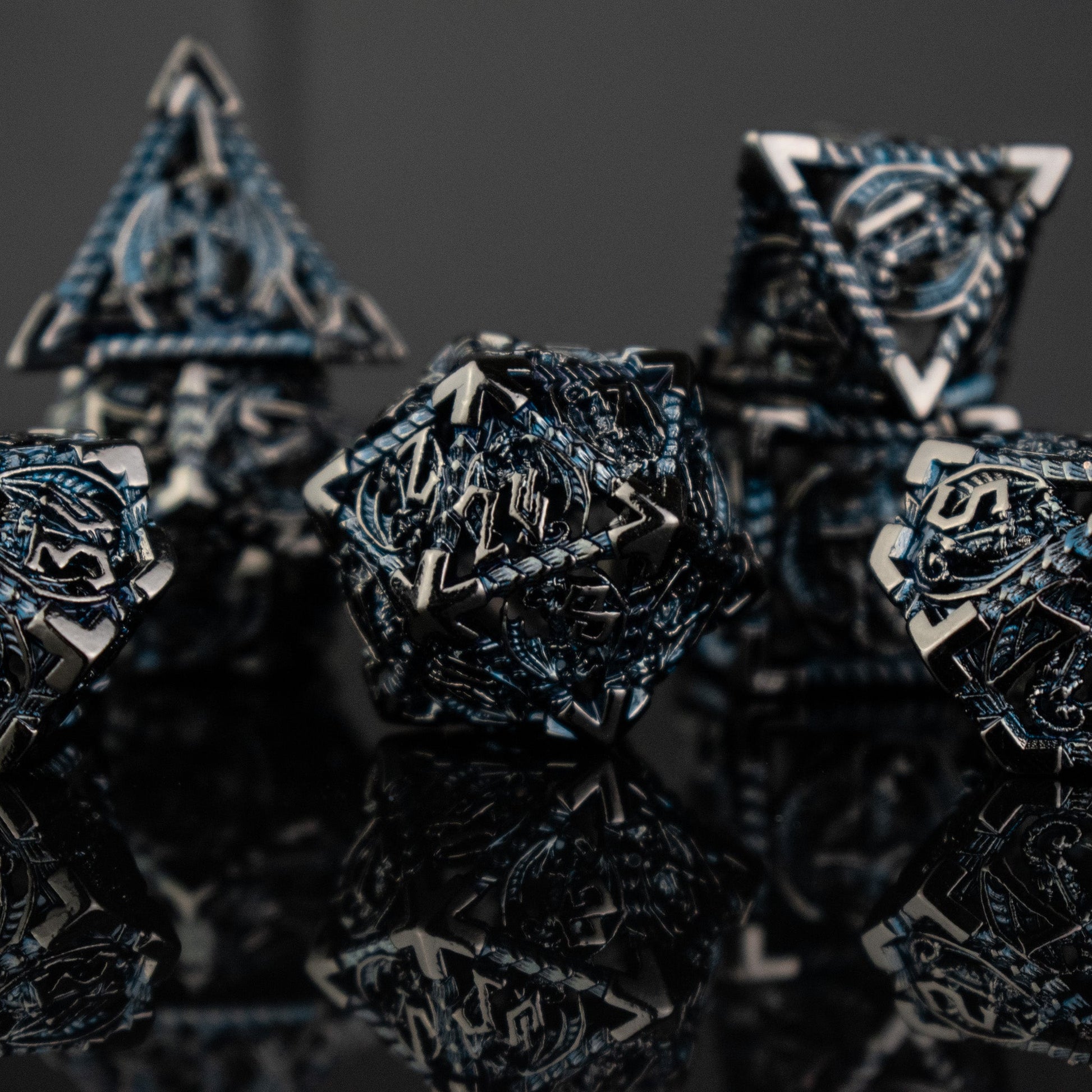 Dragonguard Hollow Metal Dice Set - Cobalt and Shadow
