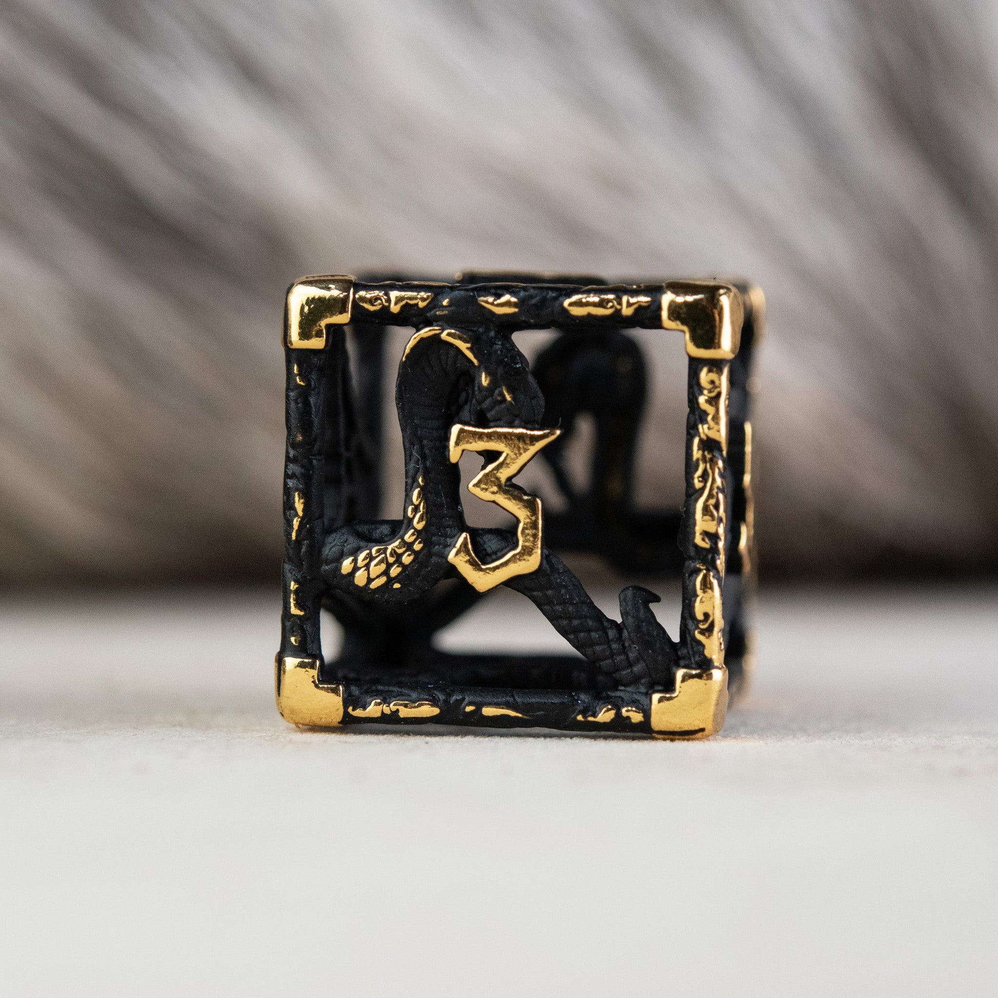 Legends of Valhalla - Matte Black and Gold Hollow Metal Dice Set