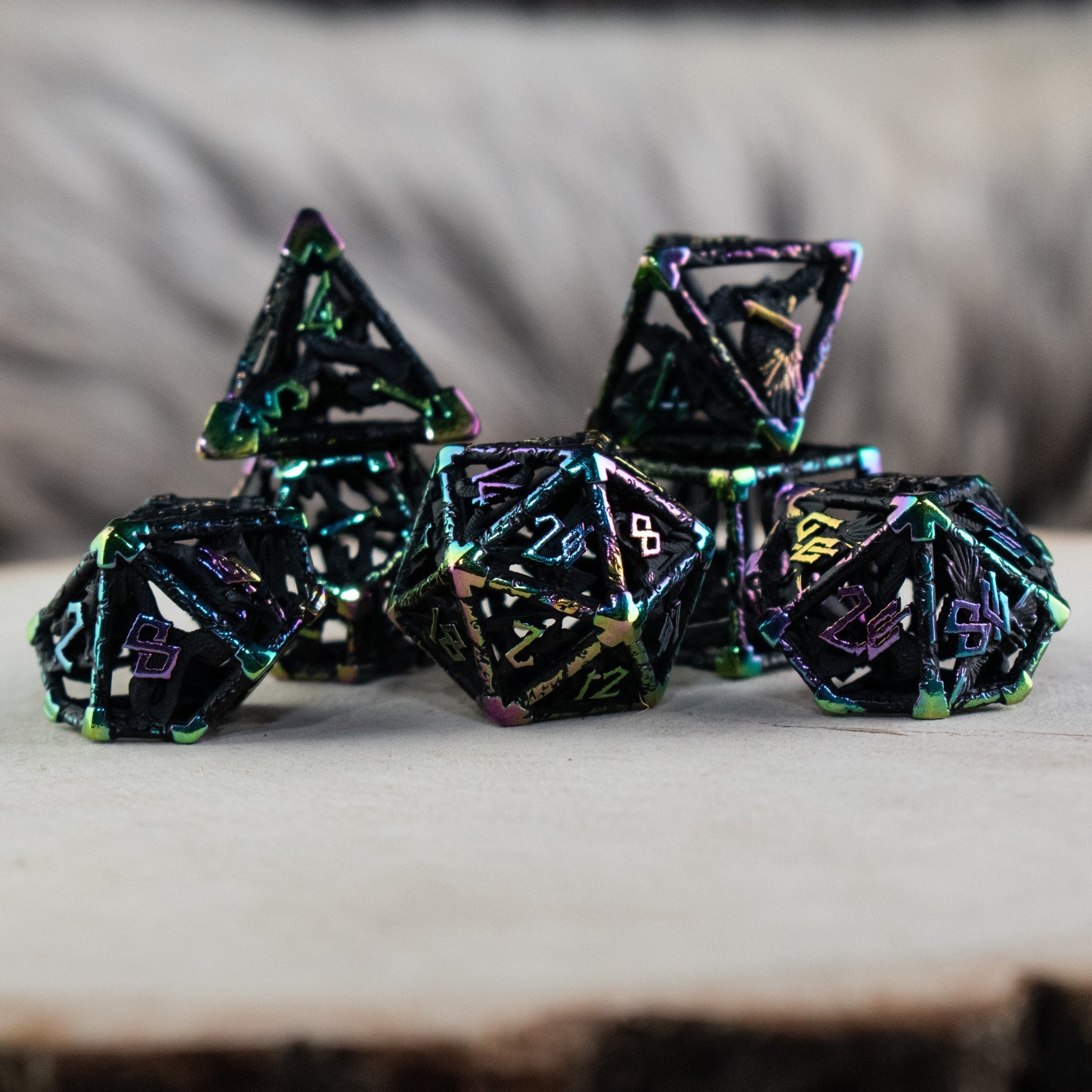Legends of Valhalla - Matte Black and Iridescent Hollow Metal Dice Set