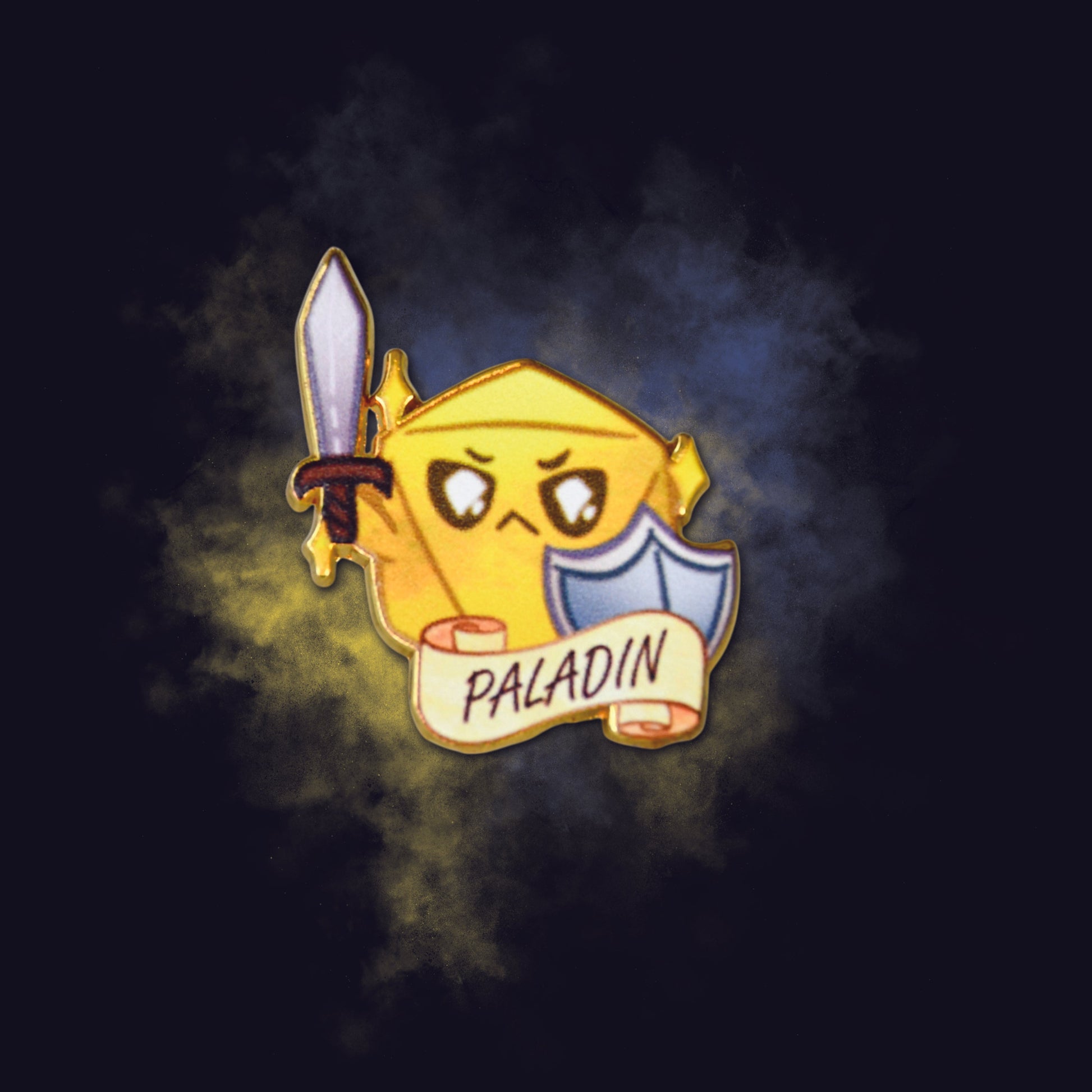 Our Paladin class dice pin measures approximately 1in.x1in.