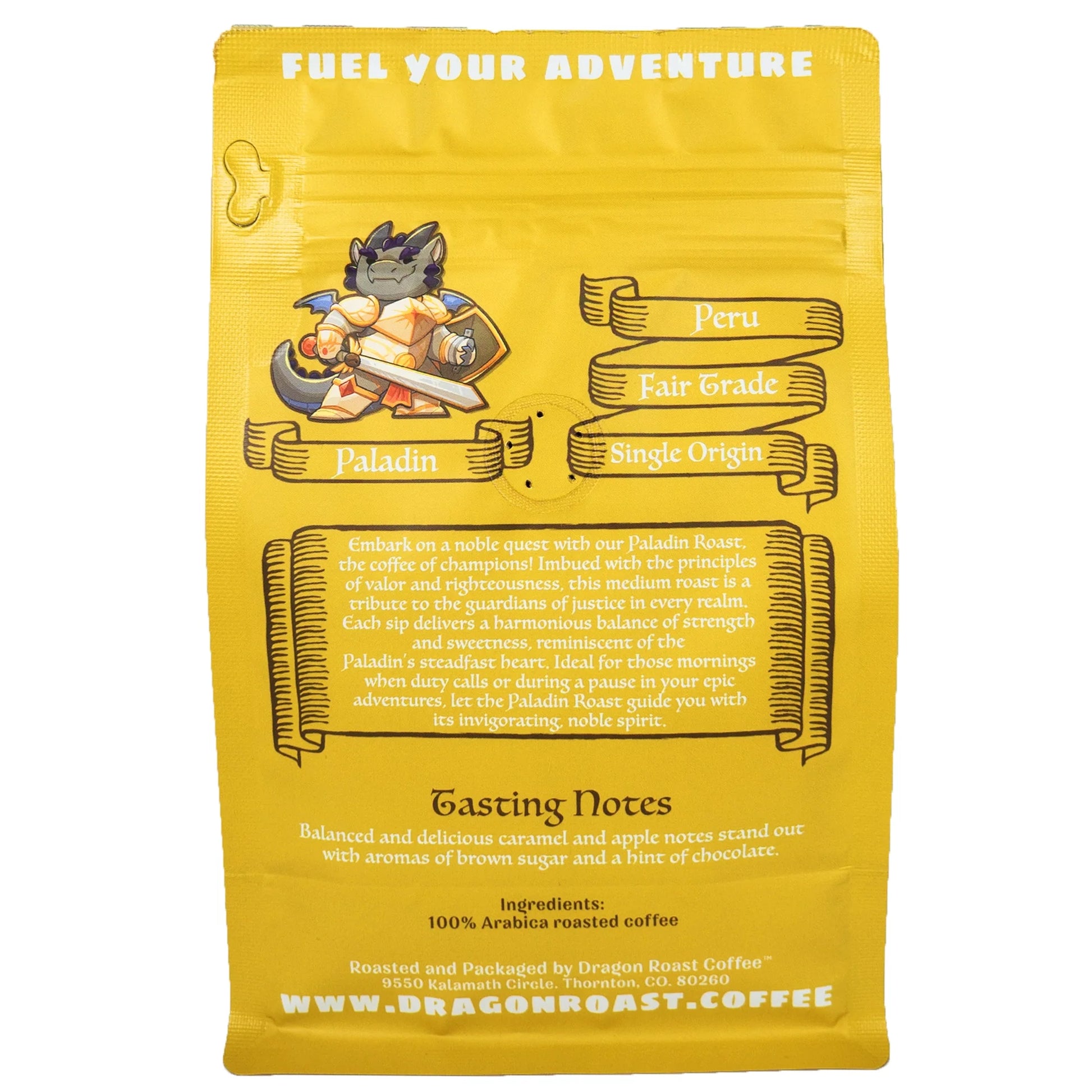 Crafted from the finest beans, hand-picked from across the mystical lands, this roast is a beacon of light in your cup. Ideal for those mornings when duty calls or during a pause in your epic adventures, let the Paladin Roast guide you with its invigorating, noble spirit. Here's to the heroes who wield coffee spoons as mightily as swords! Grab a bag (or two) today and enjoy the holy light of the gods to freshen up your day.