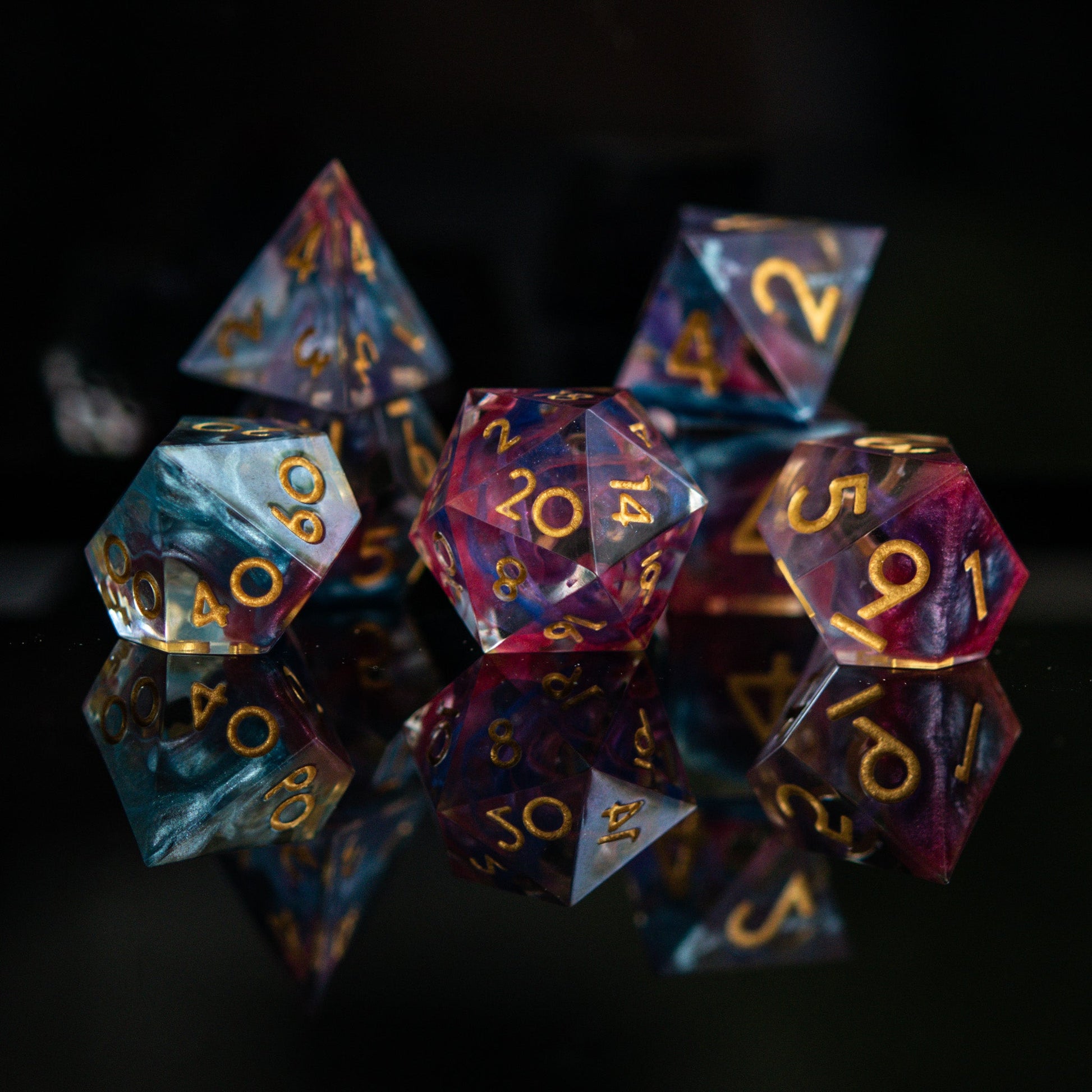 Hand-crafted from beginning to end, our sharp-edged resin dice feature gorgeously hand-painted numbers. These dice are ideal for any tabletop RPG game and are sure to impress at your upcoming session!