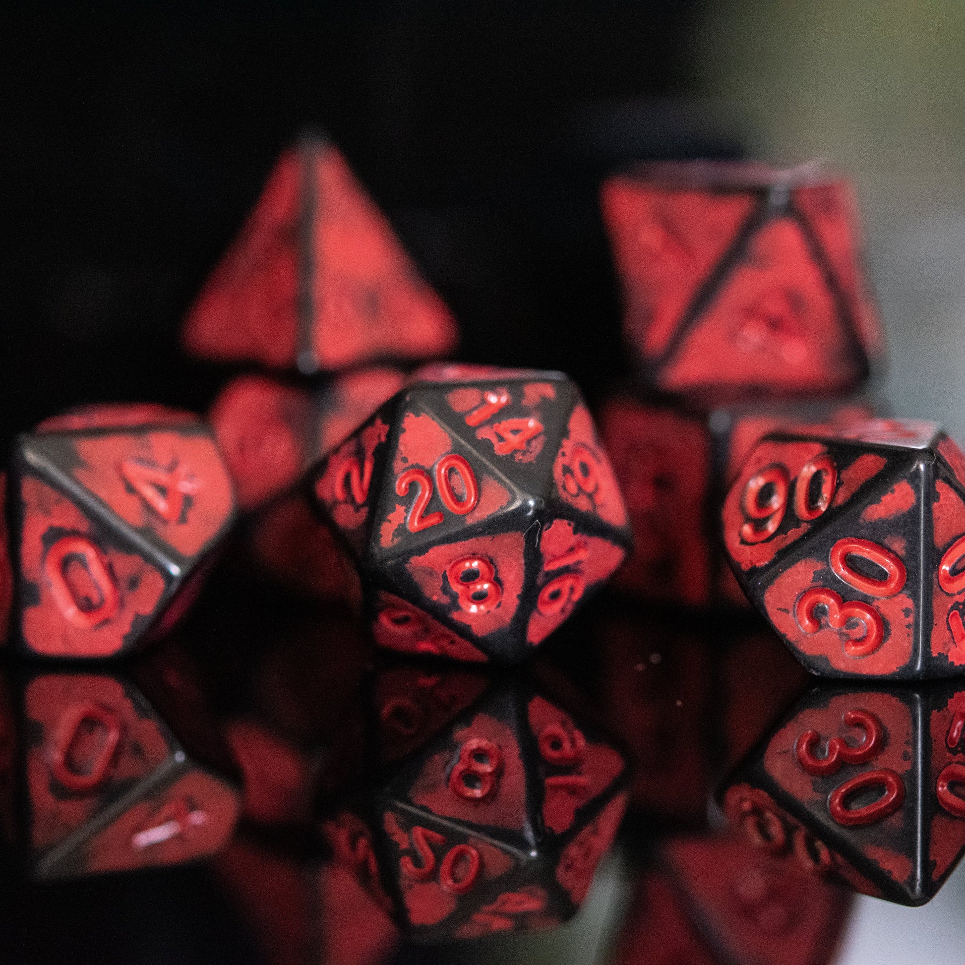 Our acrylic dice are carefully poured into individual molds and cured inside a vacuum chamber to insure no air bubbles are trapped inside the dice. After curing, each individual die is removed from the mold and numbers are painted by hand. These dice are perfect for any RPG and will sure to impress at your upcoming session!