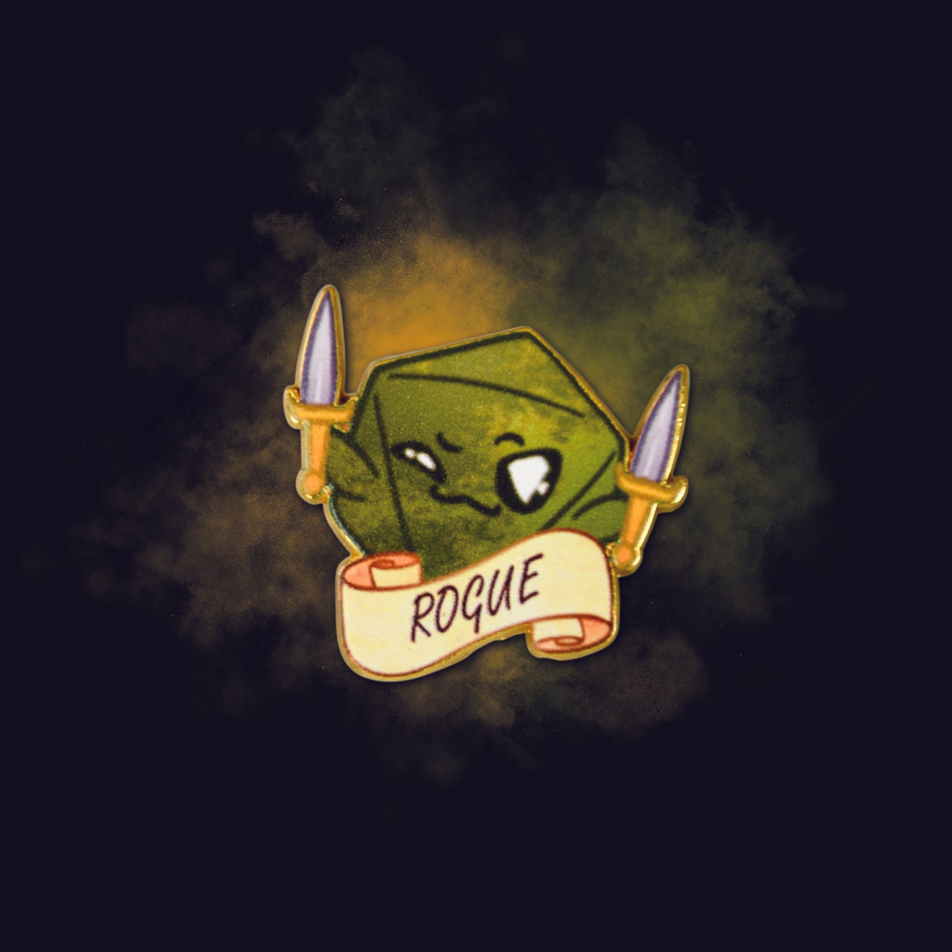 Our Rogue class dice pin measures approximately 1in.x1in.