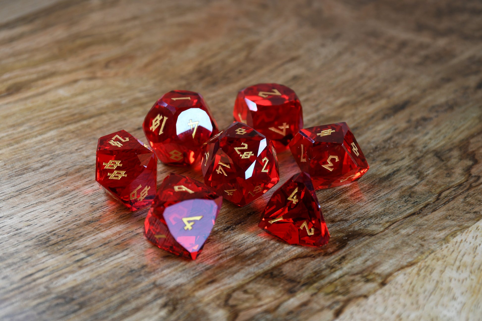 Ruby Multifaceted Glass Dice Set