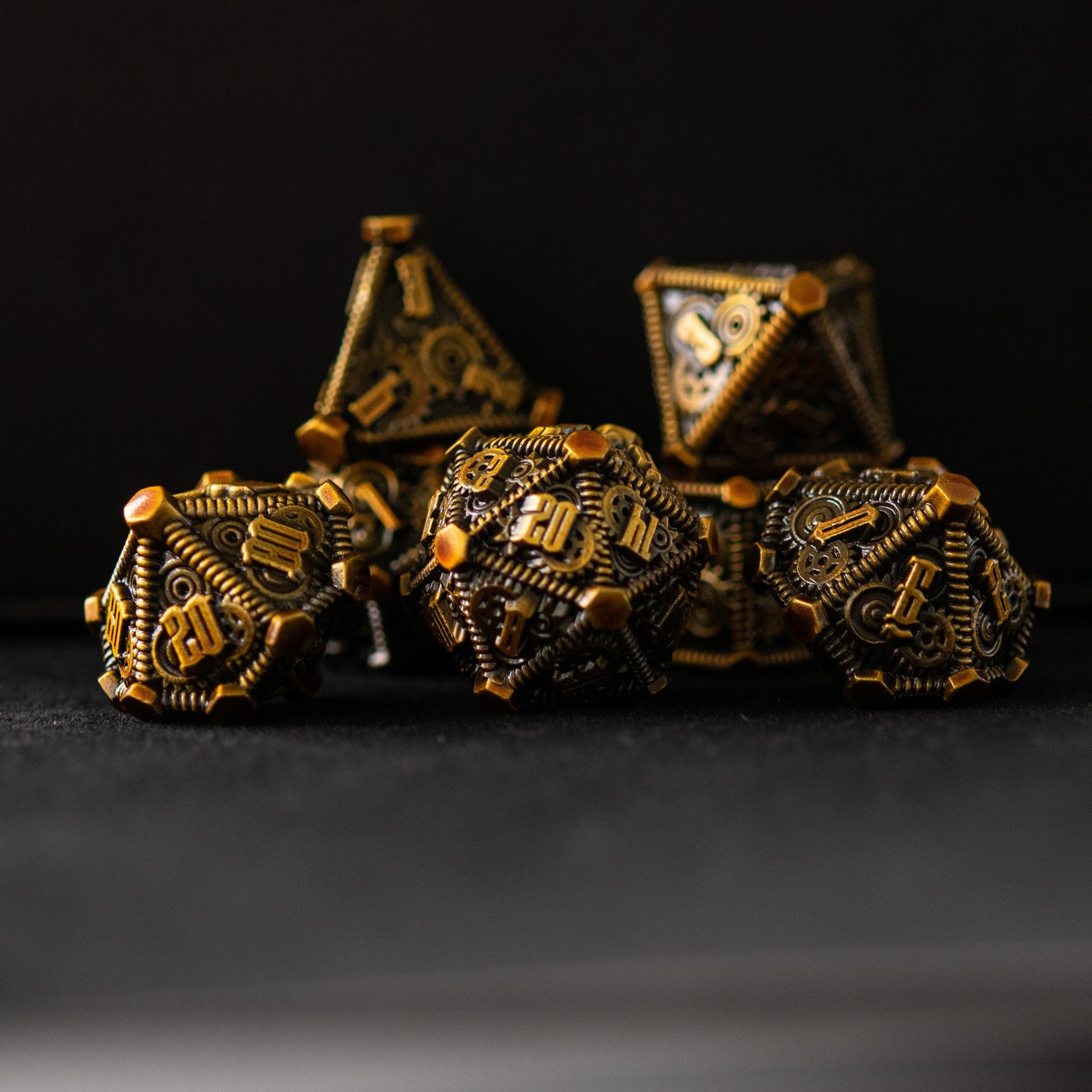 Rustic Brass - Weird West Wasteland Metal Dice Set
