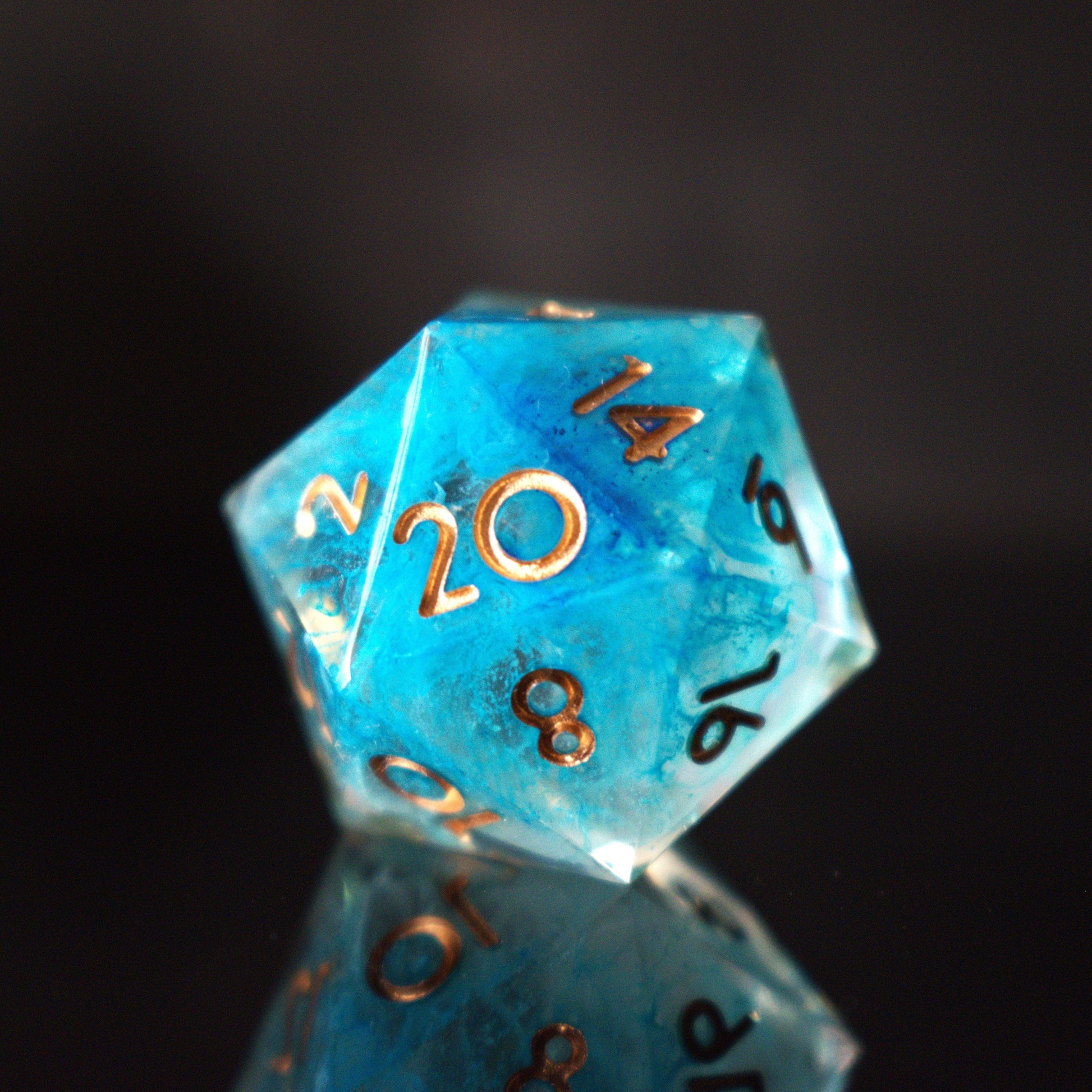 Hand-crafted from beginning to end, our sharp-edged resin dice feature gorgeously hand-painted numbers. These dice are ideal for any tabletop RPG game and are sure to impress at your upcoming session!