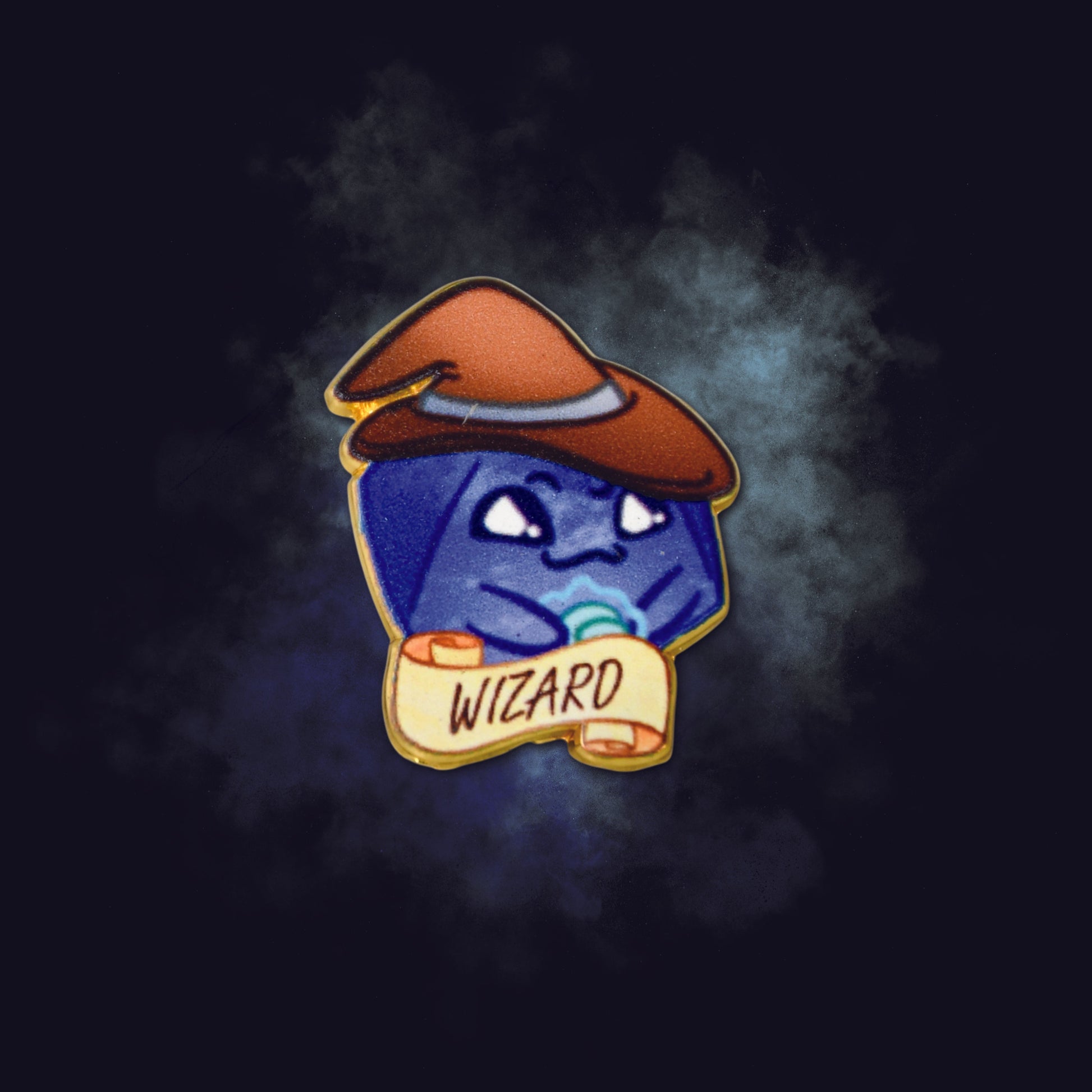 Our Wizard class dice pin measures approximately 1in.x1in.